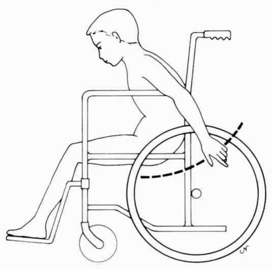 Figure 34. For clients who self-propel, the seat must be sized or shaped to sit between the upholstery mounting bars.