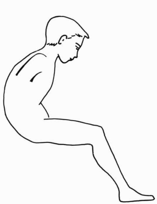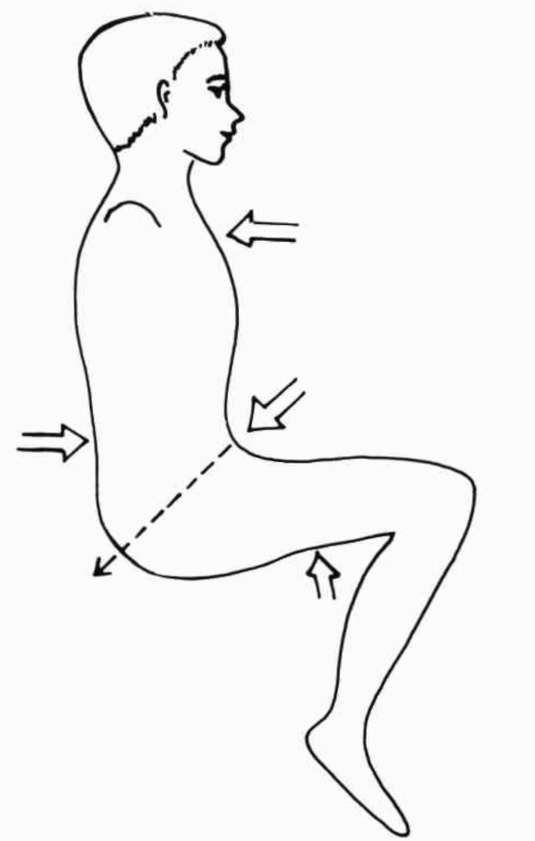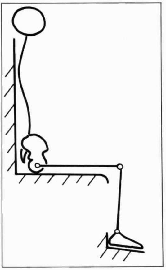 Figure 2. Sitting at attention represents a mid-range spine configuration.Cerebral palsy is a disease that expresses itself in a wide variety of static and dynamic patterns, and we cannot go into the mechanics of all those variations. We will limit ourselves to a discussion of what, in our experience, is the most common combination.