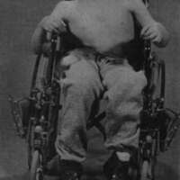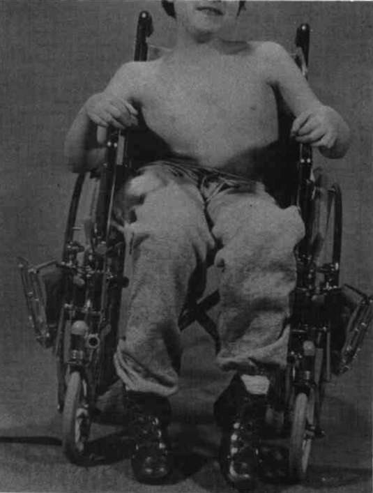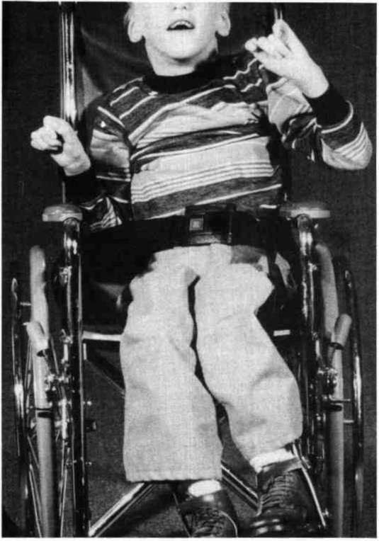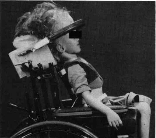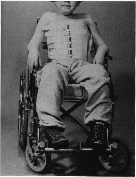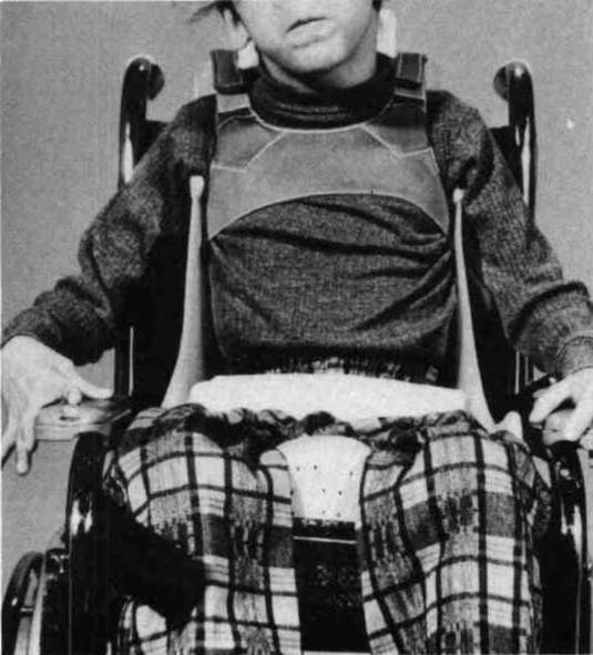 Figure 11b. J.S. provided with a soft corset and the Gillette Sitting Support Orthosis.