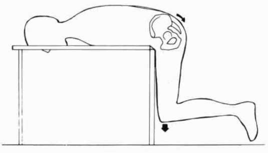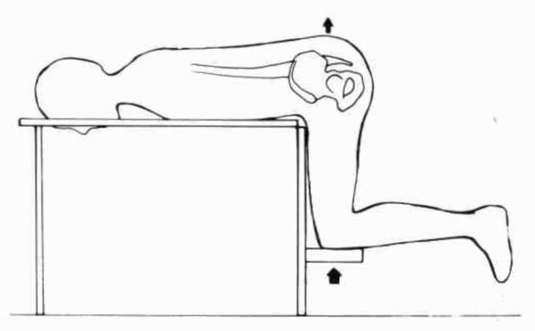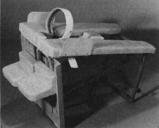 Figure 37. A supporting fixture.Figure 38. To obtain an impression for a polypropylene shell, the child is positioned facedown, hips-flexed, and knees flexed on a supporting fixture.