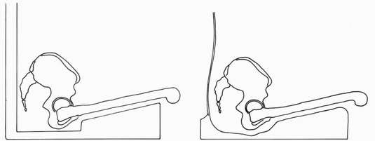 Figure 16. The anatomy calls for a depression under the pelvis to bring the femurs to a horizontal position.