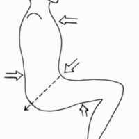 Figure 14. The three forces needed to maintain the position of the pelvis and lumbar spine are the thigh support, lap belt constraint, and lumbar support.Figure 15. A flat horizontal seat bottom will never maintain hip flexion against active extension.