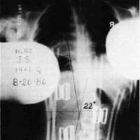 Fortunately, even some of the children with severe cerebral palsy do not have a significant deformity or collapse in the frontal plane. This is not to say, however, that scoliosis is rare in this group. Scoliosis is quite common, and we see very severe cases. When we examine a child with scoliosis, we should evaluate whether or not the scoliotic collapse is aggravated by asymetric trunk muscle spasticity. We can expect to be much more effective at controlling a scoliosis deformity when asymetric trunk muscle spasticity appears not to be a significant factor.