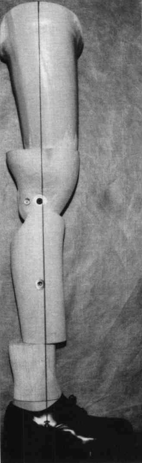 On March 13, 1974, I saw the first x-ray of an amputee standing with his prosthesis, equal weight on both feet, heels 2" apart and toes 3" apart. (See Fig. 1. Notice the two zippers on the boots.) After seeing the amputated femur in such abduction, I realized that the quadrilateral socket and standard alignment procedures were not adequate for an above-knee limb. In December 1975, Orthotics and Prosthetics, the journal of the American Orthotic and Prosthetic Association, published my article, "Allowing Normal Adduction of Femur in Above-Knee Amputations."