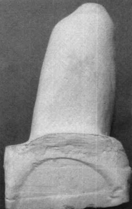When the plaster bandage and stockinette are peeled away, we now have a grossly oversided model (Fig. 5 and Fig. 6) that must be reduced in size. Practically all the reduction will take place on the lateral wall.