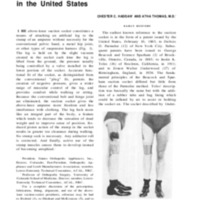 The earliest known reference to the suction socket is in the form of a patent issued by the United States, February 10, 1863, to Dubois D. Parmelee of New York City. Subsequent patents have been issued to George Beacock and Terence Sparham of Brock-ville, Ontario, Canada, in 1885; to Justin K. Toles of Stockton, California, in 1911; and to Ernest Walter Underwood of Birmingham, England, in 1926. The fundamental principles of the Beacock and Spar-ham suction socket differed but little from those of the Parmelee method. Toles' description was basically the same but with the addition of a rubber lube and bag lining which could be inflated by air to assist in holding the socket on. The socket described by Under- wood had smooth helical grooves, which he claimed ventilated the stump as well as assisted in holding the socket in place.