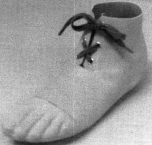 Figure 8. The prosthesis in the patient's shoe.Fabrication has changed very little since initial development. The Lynadure lamination layup has been strengthened with additional layers of stockinette and Dynalon. A few pros-thetists have requested that the co-polymer heel cup be extended anteriorly to the toes as an A.F.O. for greater push off.