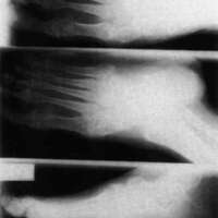 Figure 1A. Initial evaluation of a 54 year old female diabetic. Normal AP, lateral, and oblique views of the left foot.Figure 1B. At age 59 years, the lateral view is still normal.