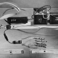 In 1960 while on Sabbatical study at the University of Southern California Tomovic from the Institute Pupin, Belgrade, suggested the use of electromechanical pressure sensitive systems to aid in solution to the control problem by introducing closed-loop feedback systems. A number of prototypes (Fig. 4) were designed and fabricated upon the return of Tomovic to Yugoslavia. Results of evaluation were also overshadowed by poor workmanship and engineering, and work on this was abandoned about 1968.
