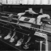 Figure 3. Needle bed of knitting machine where widenings and narrowings can be made.The yarn to be used for this sock needed firmness in its stretch so that the desired pressures could be obtained. Softness, strength, and washability were also considered important. A corespun yarn was selected, with Lycra spandex being the core and Avril rayon being the covering.