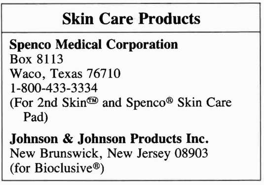 Advances in sports medicine for runners was bound to spill over into prosthetics. Of particular use is a skin protection material called "2nd Skin™" (Table 1). It is a 1/16" thick piece of gel that is applied directly onto the skin. It prevents friction between the skin and any moving surface. It does not stick to normal skin, yet because of its viscosity, will stay where it is placed. It is perforated so as to let the wound breathe as well as being sterile to prevent infection. 2nd Skin™ absorbs secretions, feels cool, alleviates itching, and can relieve pain.