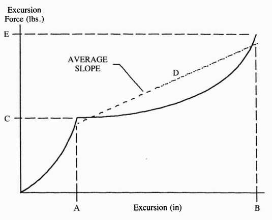Figure 3. Generalized version of excursion force vs. excursion with parameters indicated.
