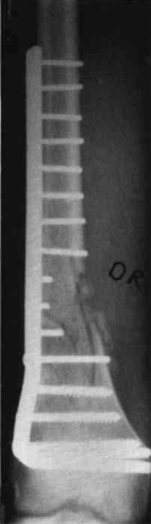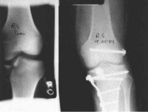 Patients with fractures involving articular surfaces of the knee have done well with 0-90° of pain free active motion obtained in generally less than ten days. Depending on the degree of internal fixation or patient compliance, a cast brace was applied prior to discharge. As stated earlier, cast bracing and passive mobilization is a common treatment modality.