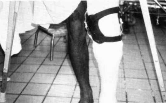 Lack of full extention and flexion became another concern in our use of any of the units utilizing the tray that the leg simply laid in. Although the tray would indicate full extension, the leg would still be flexed, and usually abducted and externally rotated (Fig. 1).