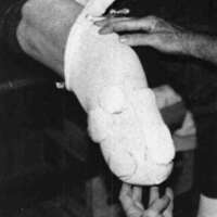 As I explained in the original article, my son was being fitted for ski boots and it occurred to me that we might make use of some of the techniques used by ski boot designers. The ski boot had an inflatable inner bladder. With the foot under weight-bearing, a conforming material similar to certain silicone compounds was injected into the bladder to give a perfect form-fitting in the attitude of weight-bearing. The incentive to apply this technique to limb prosthetics was reinforced while I was casting a below-knee patient who was a dentist. We exchanged thoughts on molds and changes when pressures are applied. Dentists take one mold for a cast which is filled with dental impression cream (similar to alginate). This is applied to the patient under pressure to give a more accurate impression, and then this is filled to form the definitive positive mold.