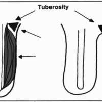 In the transverse plane, the medially directed force of the ischial tuberosity is posterior to the laterally directed force of the trochanter and femoral shaft. One might assume, therefore, that the socket would twist or whip about its long axis. This does not happen, and apparently the adductor longus tendon and other medial proximal tissues anteriorly generate enough counter force to resist this tendency. Also, the ischial tuberosity creates a posteriorly directed force (since it is nestled in the posterior medial corner of the socket), resisting this tendency. Last, this tendency is checked by a new medial trimline (described later) which captures the medial portions, or the inferior ramus of the ischium, which are almost exactly opposite the trochanter.