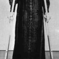 The patient had been interested in seeking elective amputation of her legs for some time. Her chief reasons were of both a physical and a psychological nature. Pain in her feet resulting from the prolonged standing teaching required, and concern over the vulnerability of her legs to fractures from falling were related. Nevertheless, her foremost concern was for her appearance. Due to the devices she used to provide height and function she always felt compelled to wear floor-length dresses and was unable to interchange footwear (see Fig. 1 & Fig. 2). She wanted greater freedom in dress and to be able to have her legs seen without embarrassment over their appearance. She also found the braces and boots cumbersome and loose on her legs. Therefore, the patient came to the clinic seeking amputation primarily for reasons of cos-mesis and self-image.