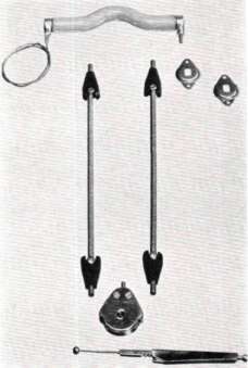Special control-system kits are available for below-elbow amputees with biceps cineplasty tunnels. The twin-cable system (Fig. 17), often referred to as the UCLA system, is available with either straight or ox-bow acrylic tunnel pins reinforced with a copper core. Provisions have been made for quickly attaching or removing the control cables with respect to the pin. Rapid selection of the initial tension on the muscle tunnel is made possible by the incorporation of a turnbuckle type of unit which controls the effective cable length. A single-cable system using a sheave-type equalizer and known as the APRL system is also available (Fig. 18). Cable-tension adjust-ment is provided by a single cable-length ad-juster installed between the sheave and the terminal device. Each of these systems is considered merely as a replacement for the shoulder-operated control system, since all other portions of the prosthesis are the same whether operated from the shoulder or from the muscle tunnel.