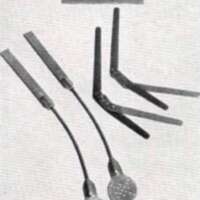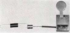 Where no wrist-rotation step-up unit is used, the Robin-Aids flexible hinge (Fig. 10, bottom) is employed between the socket and arm cuff or triceps pad to impart axial stability to the entire prosthesis and yet to permit maximum use of the residual pronation-supination. The Robin-Aids hinge consists of a metal cable covered with a wrapped-wire housing and having flat terminal plates designed for firm anchoring in the plastic-laminate forearm and for fastening to the upper-arm cuff.