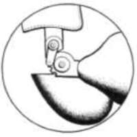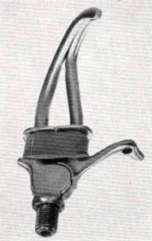 Prehension in the Dorrance hooks is provided by rubber bands which force the hook fingers together. Adjustment of the prehension force is accomplished by adding or removing bands. Hook fingers are available in many different sizes and shapes of both steel and aluminum. Dorrance hooks offer the extreme in ruggedness and simplicity. The model known as Utility #5, shown in Fig. 5, is very popular.