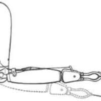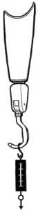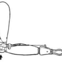 Test: Straighten the prosthesis at the side (Fig. 2). Hook the scale over the terminal device and apply a force of 50 lb. straight down. (A force of 30 lb. is sufficient for children.) Standard: The prosthesis should not slip more than 1 in. in relation to the stump, and no part of the prosthesis or harness should fail when a 50-lb. distal load is applied.