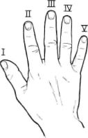 | Footnote | | Meaning that digit corresponding to the ring finger in man. Among anatomists generally, at least two systems for identifying hand digits are in accepted scientific usage, often interchangeably by the same writer. A common convention is to number the digits from I to V, beginning with the thumb as digit I and ending with the little finger as digit V (Fig. 1). But many competent writers, thinking of the hand as having a thumb and four fingers, label the fingers as first, second, third, and fourth, meaning the index finger, the middle finger, the ring finger, and the little finger or pinkie, respectively. Throughout this issue of Artificial Limbs, it is considered that the normal hand has five digits, one of which is a thumb, the other four being fingers. A digit is here referred to with the understanding that digit I is the thumb Fingers are referred to as being numbered beginning with the index finger as the first finger.-Ed. |