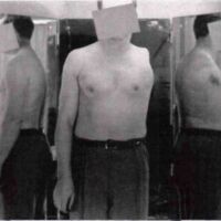 Exercises to correct scoliosis and to increase range of motion were prescribed, the Sayre head sling was used to stretch tight neck musculature, and self corrective mirror instruction in posture was given. When last seen in May 1952, the subject was still performing his exercises, and his posture and shoulder mobility had improved markedly.