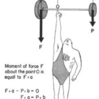 A "moment" is the product of a force acting through some perpendicular distance from a reference point or "moment center." A moment tends to cause a physical body to rotate. In the simple lever shown in Fig. 5, the force F exerts a moment F X a about the point O. In order for the body to have no tendency to rotate, the sum of all moments acting upon it must be zero, such as when a force P on one end of the lever, acting through distance b, balances a similar force F on the opposite end, acting through distance a, as in Fig. 5.