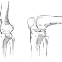 Fig. 10. Schematic drawing showing the nearly complete lack of relative motion between patella and tibia during flexion of the knee. The inextensibility of the patellar ligament prevents the patella from moving proximally with respect to the tibia. From Marks