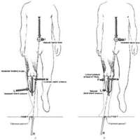 Complete elimination of the lateral stabilizing force L by outset of the foot is generally undesirable, for the resulting wide-based gait is abnormal and unnecessary. Actually, a narrow-based gait with a definite need for the lateral force L (and corresponding lack of pressure on the head of the fibula) is definitely indicated for stumps 4 in. or more in length, the wide-based alignment being then reserved for very short below-knee stumps. It must be remembered, however, that planning the fit and alignment of a below-knee prosthesis to accommodate a narrow-based gait requires that the need for a definite lateral stabilizing force be recognized and accounted for in the fitting of the socket.