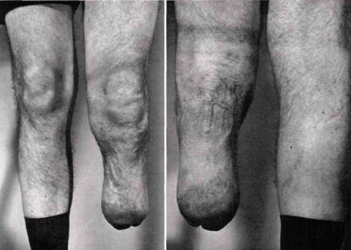 Because of a landmine explosion in 1945, Case 42, a 37-year-old accountant weighing 170 lb. and standing 5 ft. 10 1/2 in., was subjected to amputation of the left leg below the knee. A revision performed later that year left deep folds and scars on the end of the stump. The right ankle had been fractured, and with increased activity it became swollen and painful.