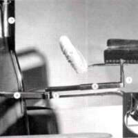 Description - As in the GWSF unit, a round clamp 1 attaches to the chair upright. An L-shaped bracket 2 extends from the clamp to provide attachment for and anteroposterior angulation of an adjusting plate 3. A ball-bearing tube 4 is soldered to the posterior lateral aspect of the plate.