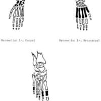 - Metacarpal or Metatarsal - Complete absence of the metacarpals or metatarsals, with proximal and distal skeletal elements present. (For example, Meromelia: I-; Metacarpal.)