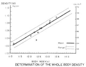 Based on these studies, two graphs were developed that relate whole-body density to body-segment density (Fig. 4 and Fig. 5). These are approximations only, since no exact data are available.
